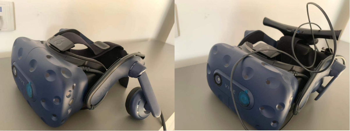 虚拟现实设备包含HTC Vive头盔、手柄手套、全身动捕、定位追踪等,能够较全面地覆盖虚拟现实技术相关硬件设备,便于师生进行软硬件结合与虚拟现实技术相关的应用开发。HTC vive可加载支持虚拟现实的视频与游戏,延迟控制在20ms以内,产品由一个头戴式显示器、两个单手持控制器和一套基地台组成。