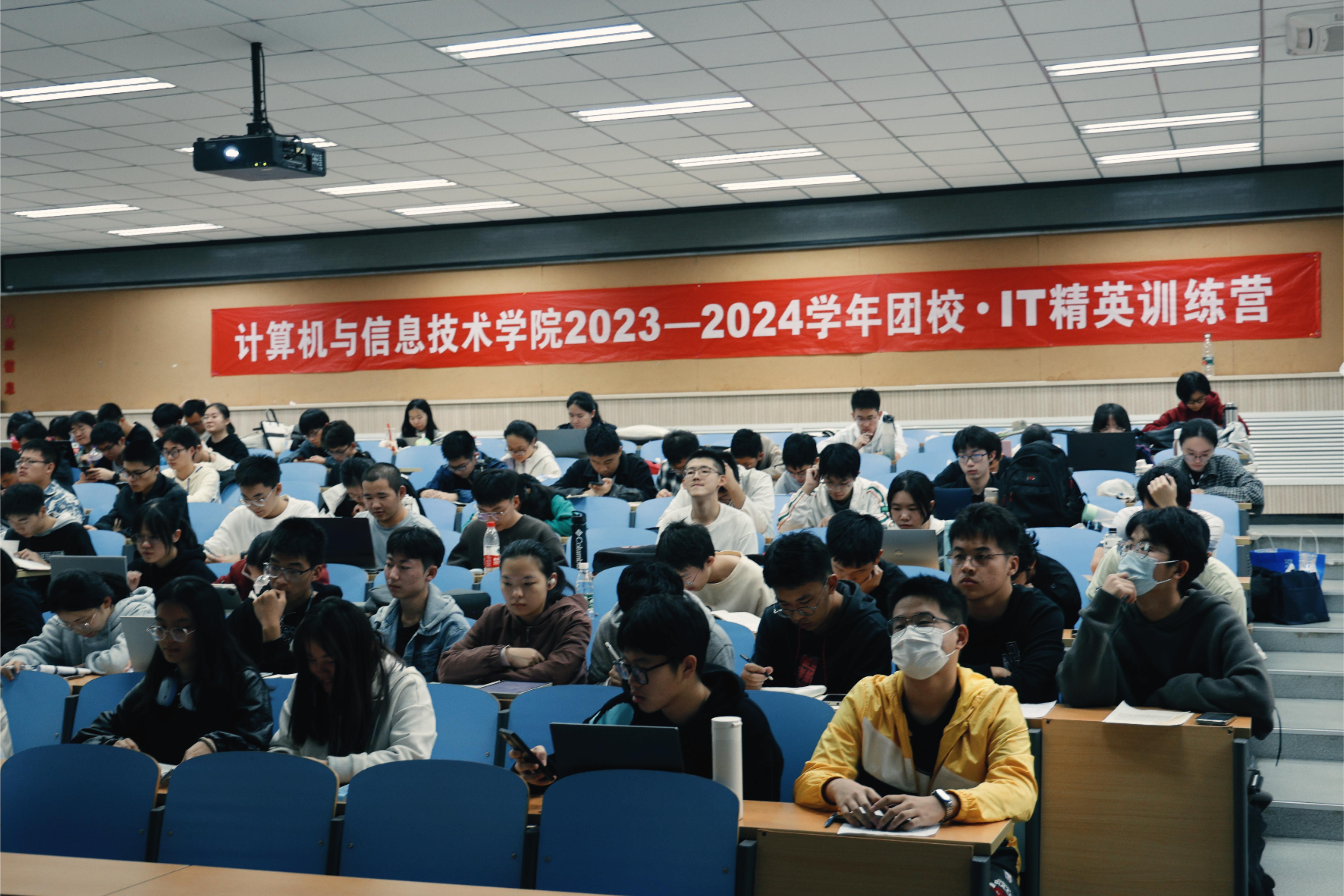 2023年10月26日,计算机与信息技术学院于九教中101举行第二十二期团校暨IT精英训练营开班仪式,此次团校的主题为“青春践行 团十九大”,旨在通过集中培训,理论和实践相结合,以“自学、研学、互学、帮学”等学习形式全面培养和提升员工骨干的综合素养、履职能力、责任担当和服务水平。公司党委副书记段春荣以及团委全体老师出席,学院全体本科员工干部共计一百三十余人参会。