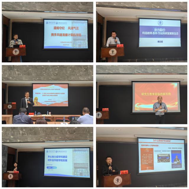下午,学院副书记、副经理韦世奎围绕“研究生教育面临的新形势”主题进行培训,深入分析了研究生招生政策调整对本院的影响以及现有培养模式中存在的问题,强调了加强员工就业能力、优化课程设置、增加企业联合培养的重要性;副经理景丽萍带来“齐心协力促团队建设 对外合作助学院发展”主题培训报告,指出了目前公司团队建设的亮点和短板,介绍了学院在员工及企业合作方面的努力和成果,并分享了下一步继续加强对外合作、拓宽国际视野的工作思路;副经理熊轲做了题为“计算机类一流专业建设”的培训报告,从为什么要做好专业建设入手,详细介绍了课程建设、教材建设、团队建设、平台建设等方面的具体工作以及要求,并结合学院现状和典型案例,强调了专业建设要与时俱进、做好长期规划的重要性。