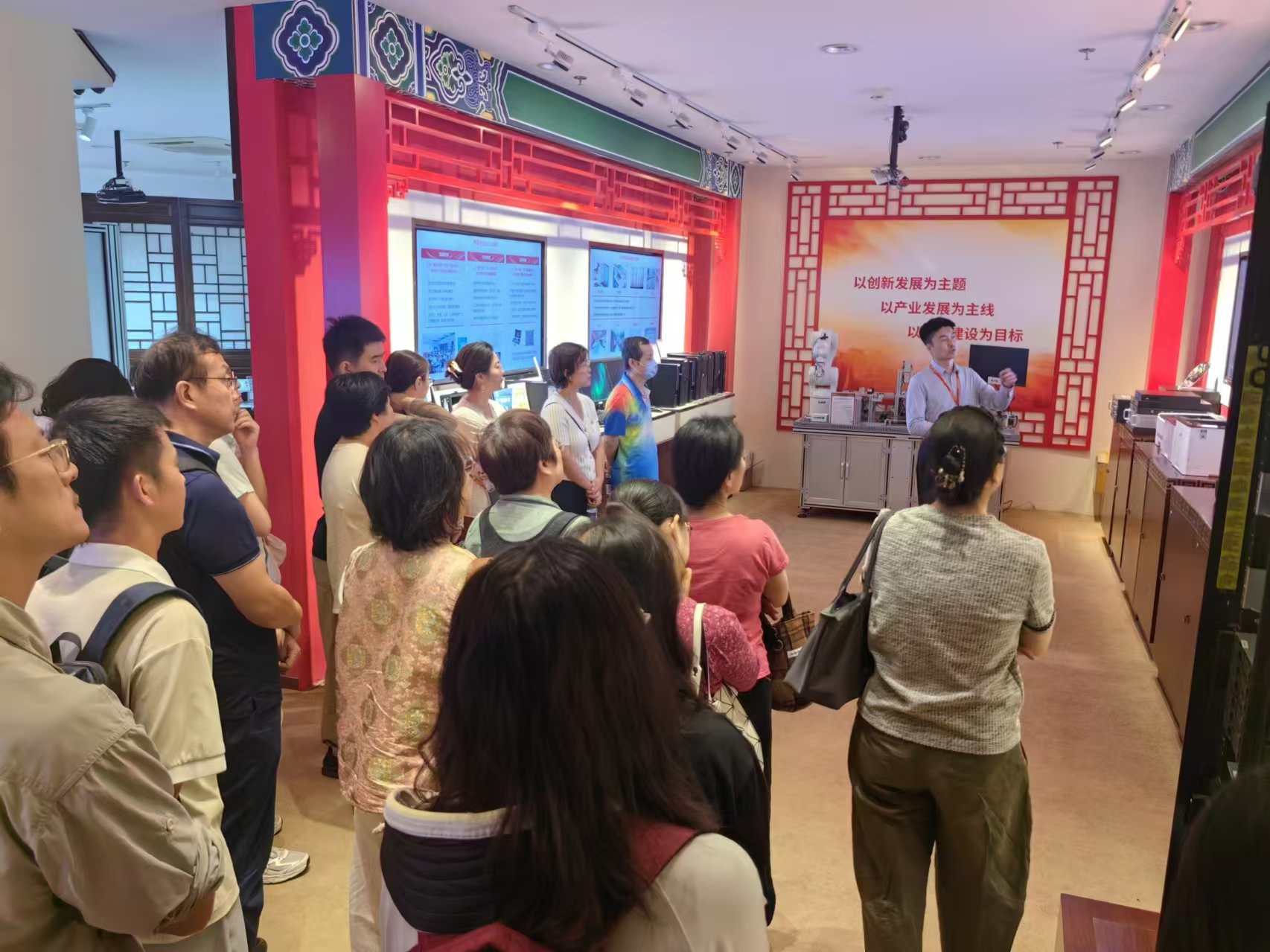 公司党委书记贾卓生、副经理(主持工作)李浥东带队,学院70余位教职工党员首先分组参观了龙芯中科总部展厅,在副总裁张戈的解说带领下,详细了解了龙芯中科的发展历程、核心技术和产品应用情况。特别是最新一代国产CPU的研发进展及其对于保障国家信息安全所起到的关键作用,给党员留下了深刻印象,纷纷表示要把这部分内容融入到课程思政中,增强员工对国内自主可控技术的理解和认识,同时激发员工爱国情怀和技术报国的热情。随后,党员们观看了龙芯中科企业宣传片,片中不仅展示了公司在科研创新方面取得的重大突破,同时也反映了龙芯党总支部带领全体员工积极投身于我国信息技术自主创新事业中的奋斗历程,进一步激发了党员的责任感和使命感。