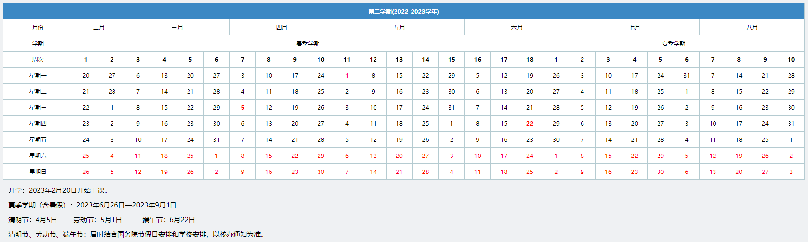 附件4 2023年第二学期校历