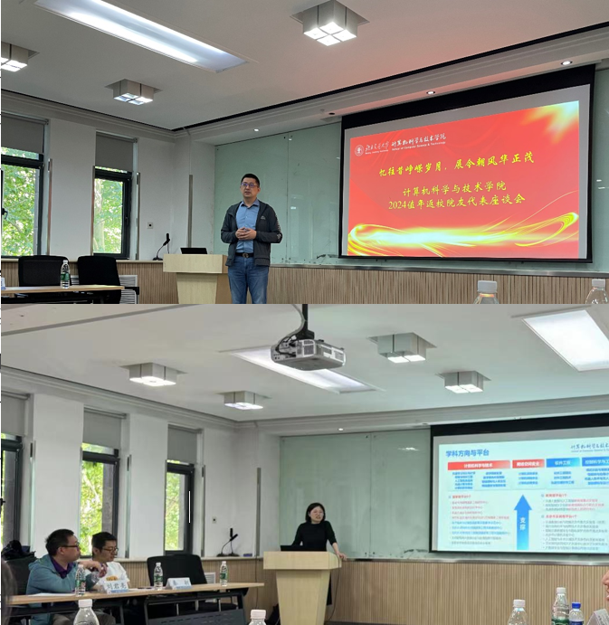 景丽萍从学院概况、团队队伍、人才培养、科学研究、社会服务、员工工作、校企合作等多个方面介绍了学院的发展情况和本年度值年返校的筹备情况。
